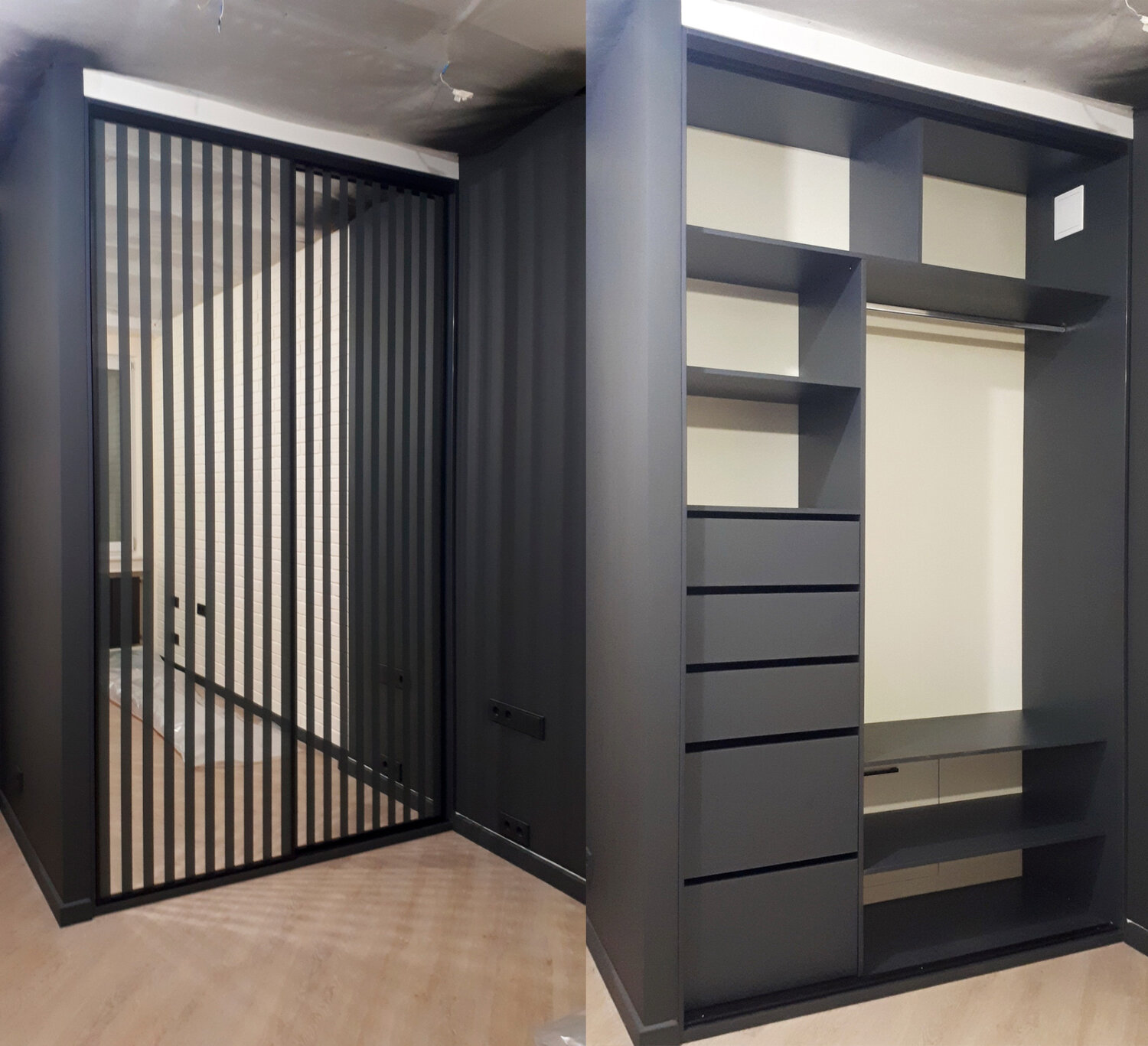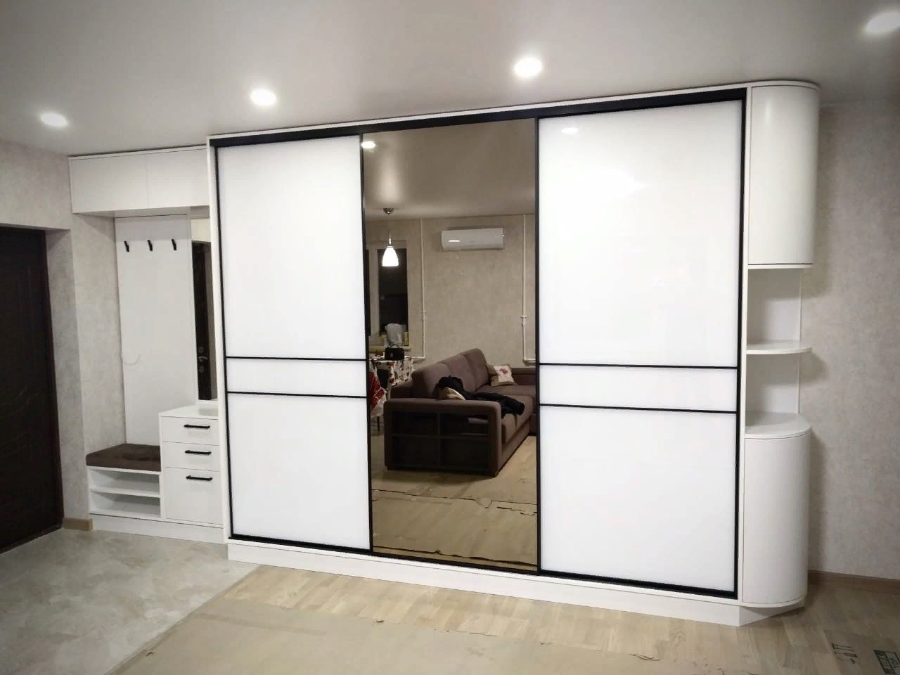 - При заказе шкафа-купе необходимо учитывать сложные технические моменты. Если у вас неровный пол то лучше подобрать ножки с регулируемой высотой. В новостройках допускается отклонения в неровностях стен от 5 до 10 мм.